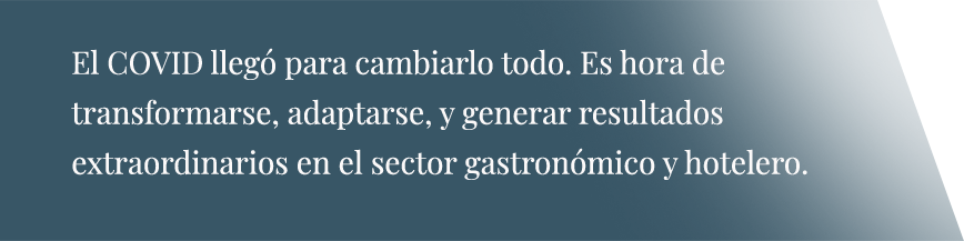 El COVID llegó para cambiarlo todo. Es hora de transformarse, adaptarse, y generar resultados extraordinarios en el sector gastronómico y hotelero.